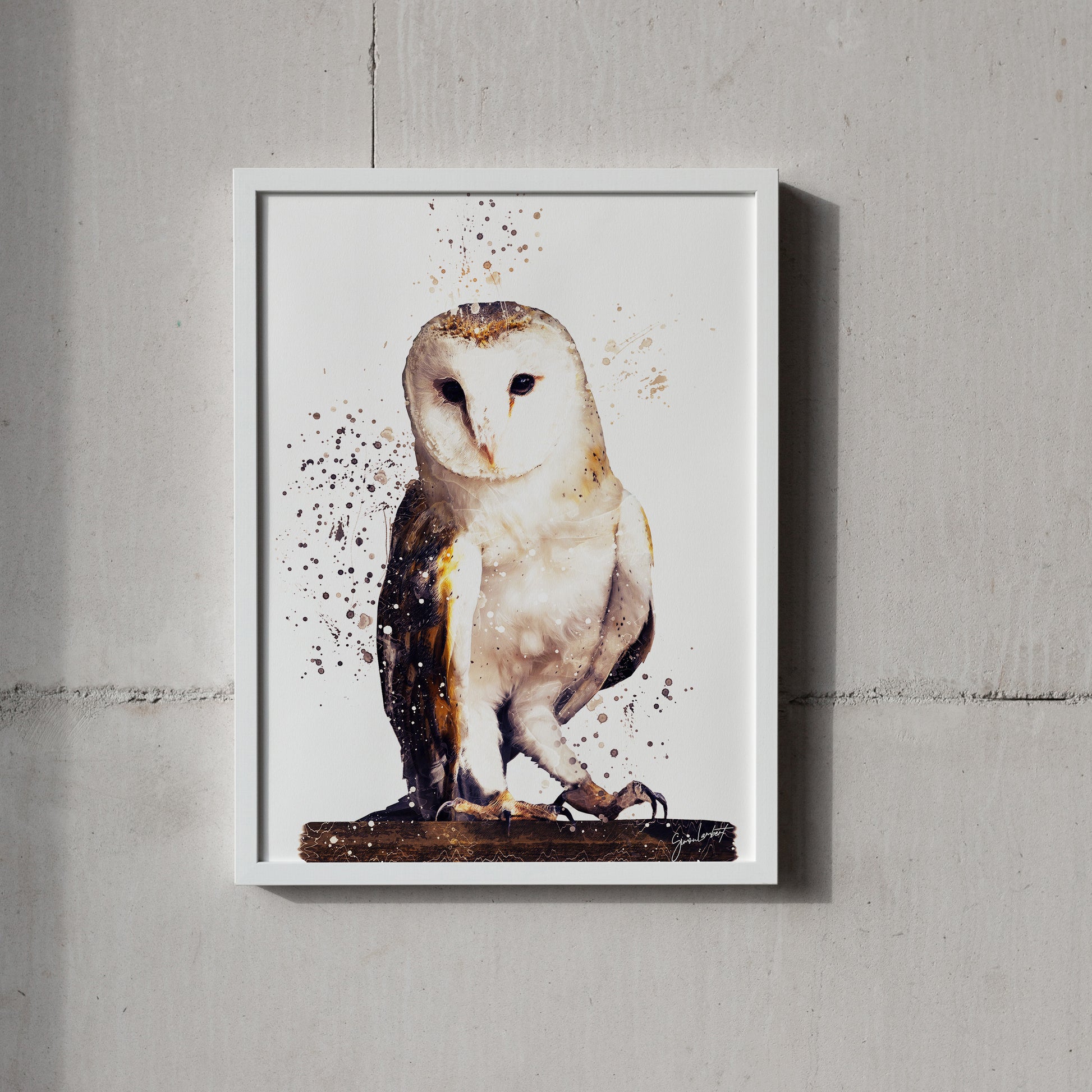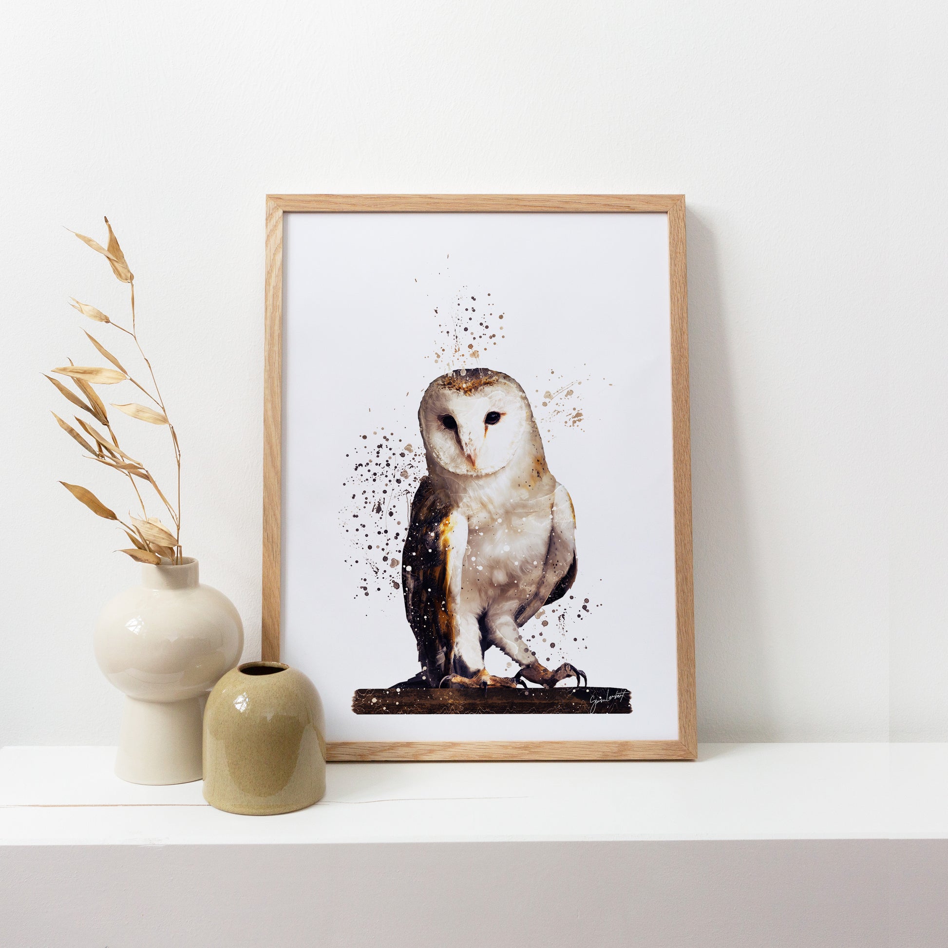 Barn Owl Portrait Splatter Style Artwork Fine Art Print (Unframed)