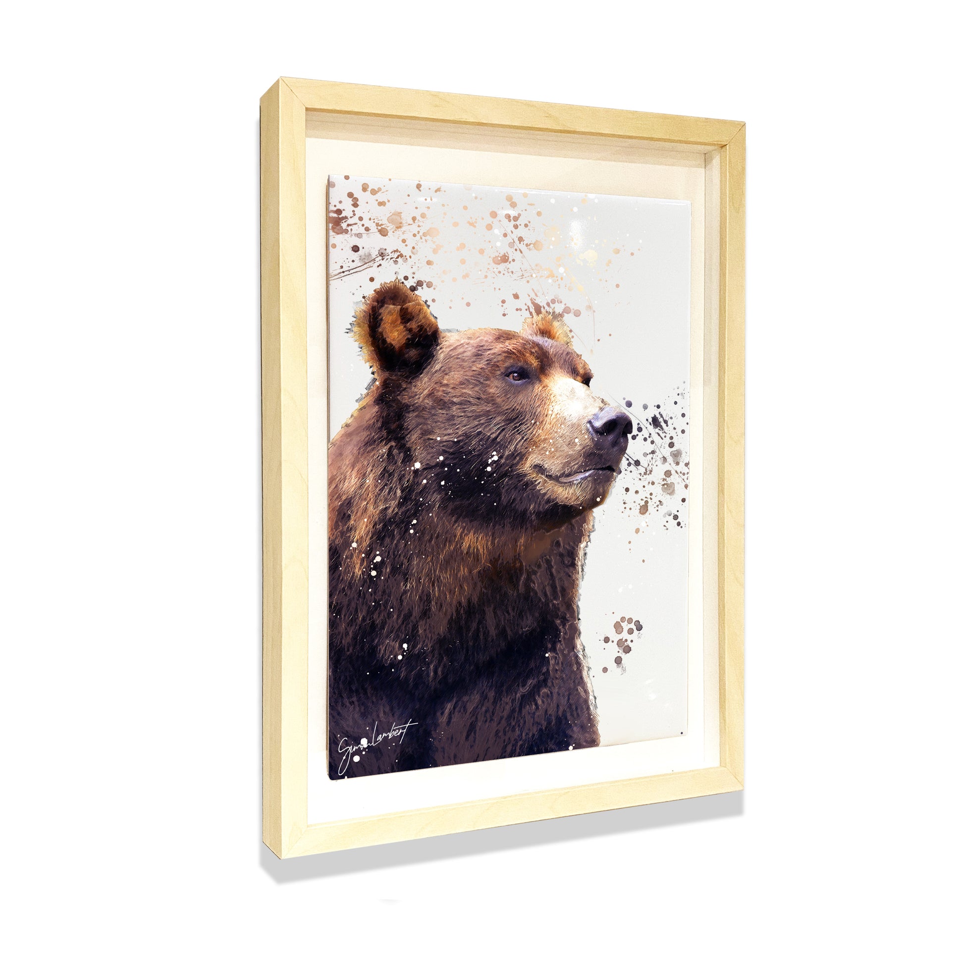 Bear Portrait Brush Splatter Style Artwork - Framed CERAMIC TILE Art