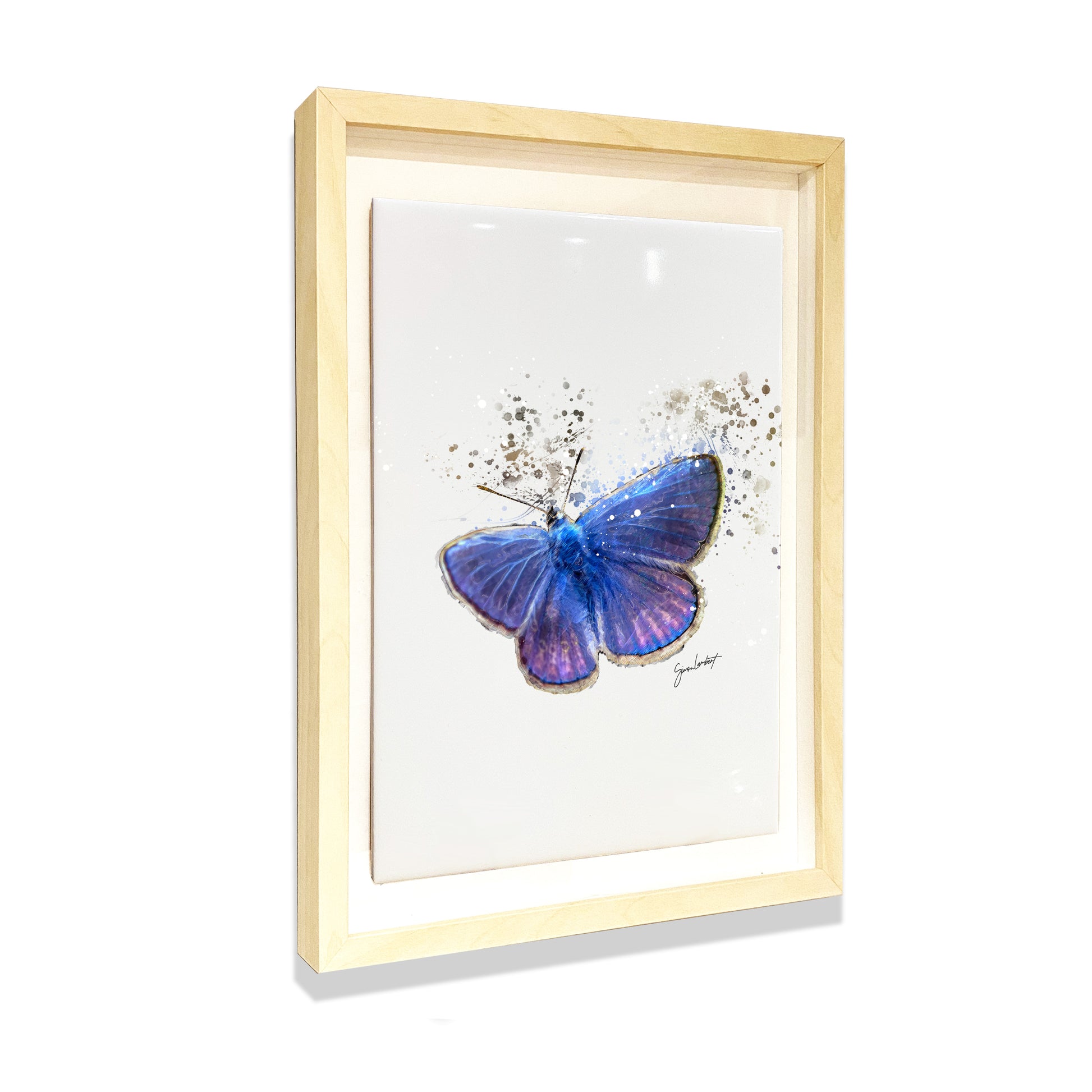 Blue Butterfly Portrait Brush Splatter Style Artwork - Framed CERAMIC TILE Art