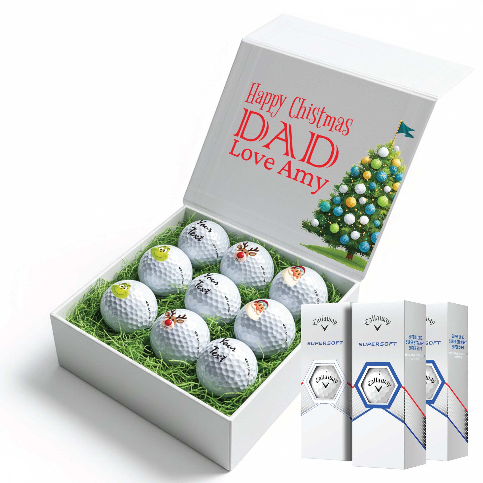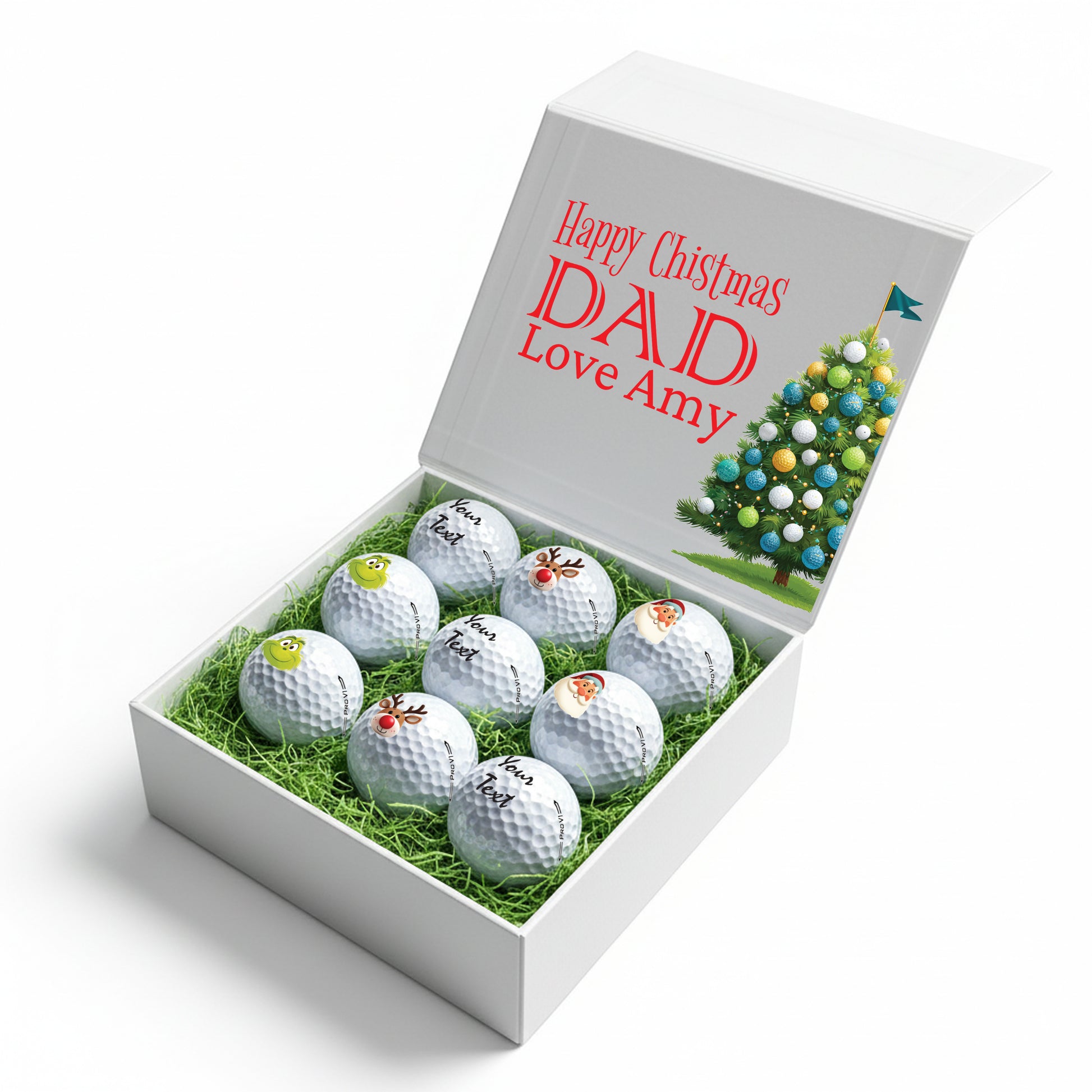 Christmas Personalised Branded 9 Golf Ball Set in Customised Box - Themed Golfer's Gift, Father's Day, Retirement, Birthday
