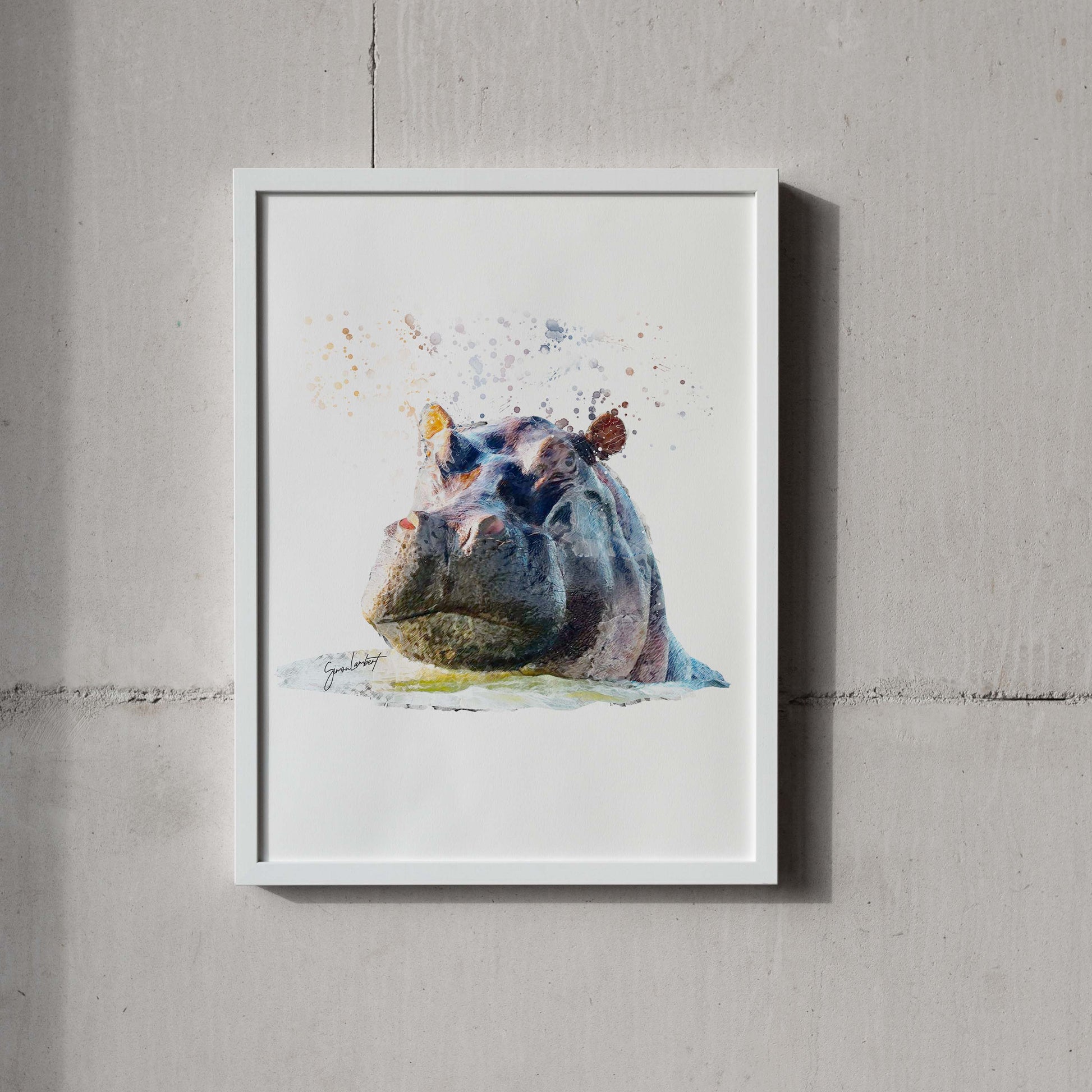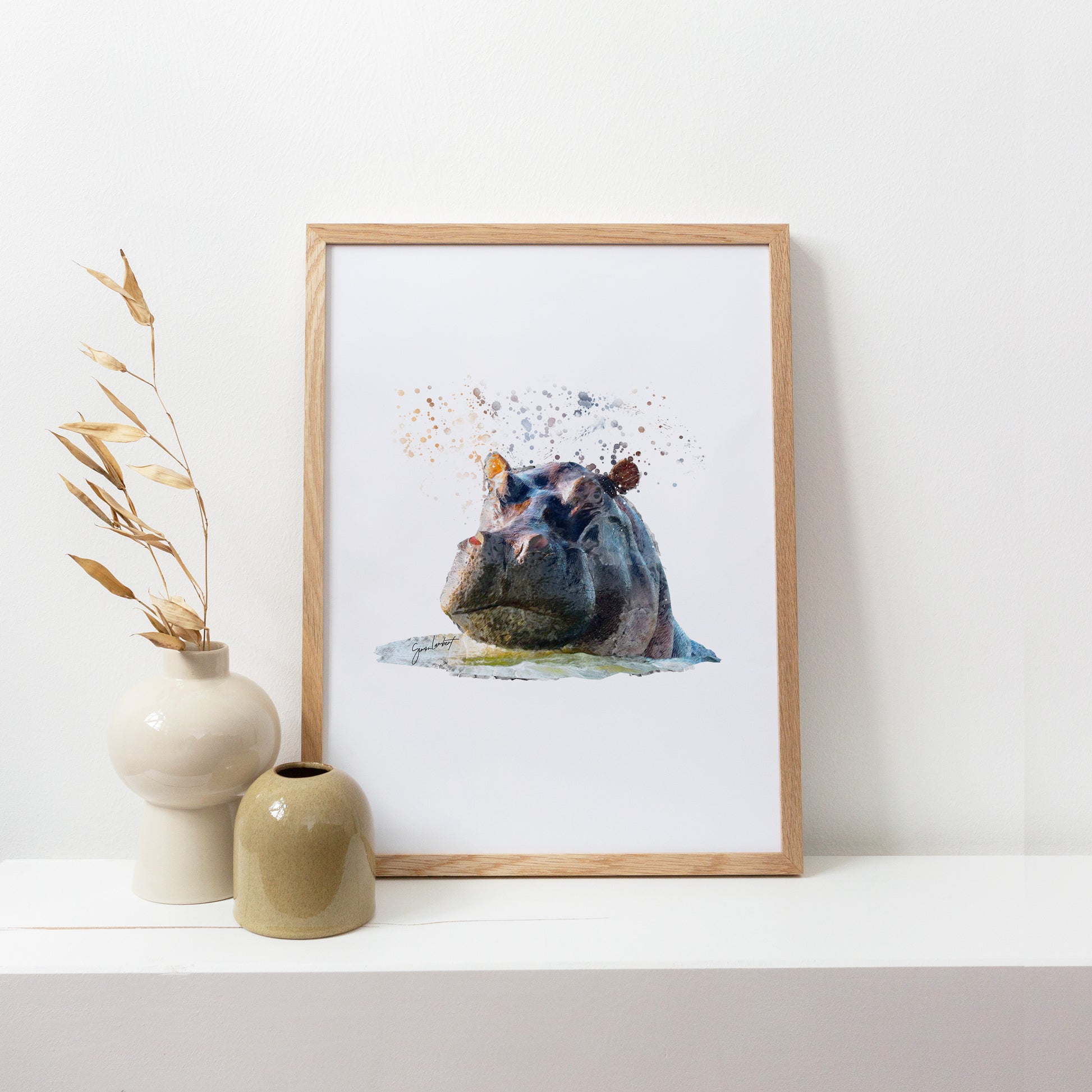 Hippo Portrait Splatter Style Artwork Fine Art Print (Unframed)