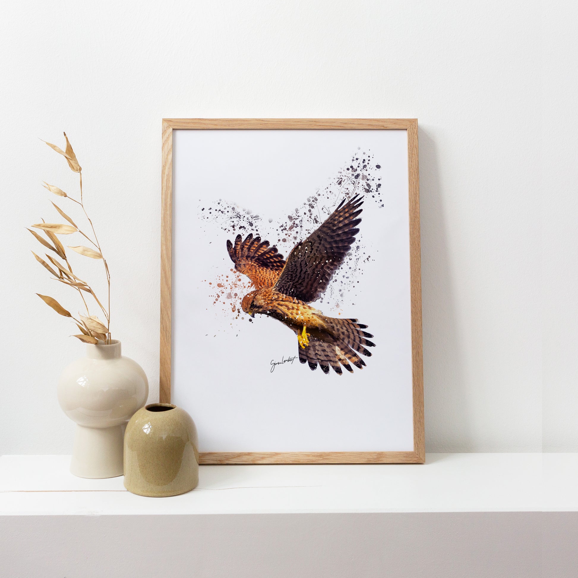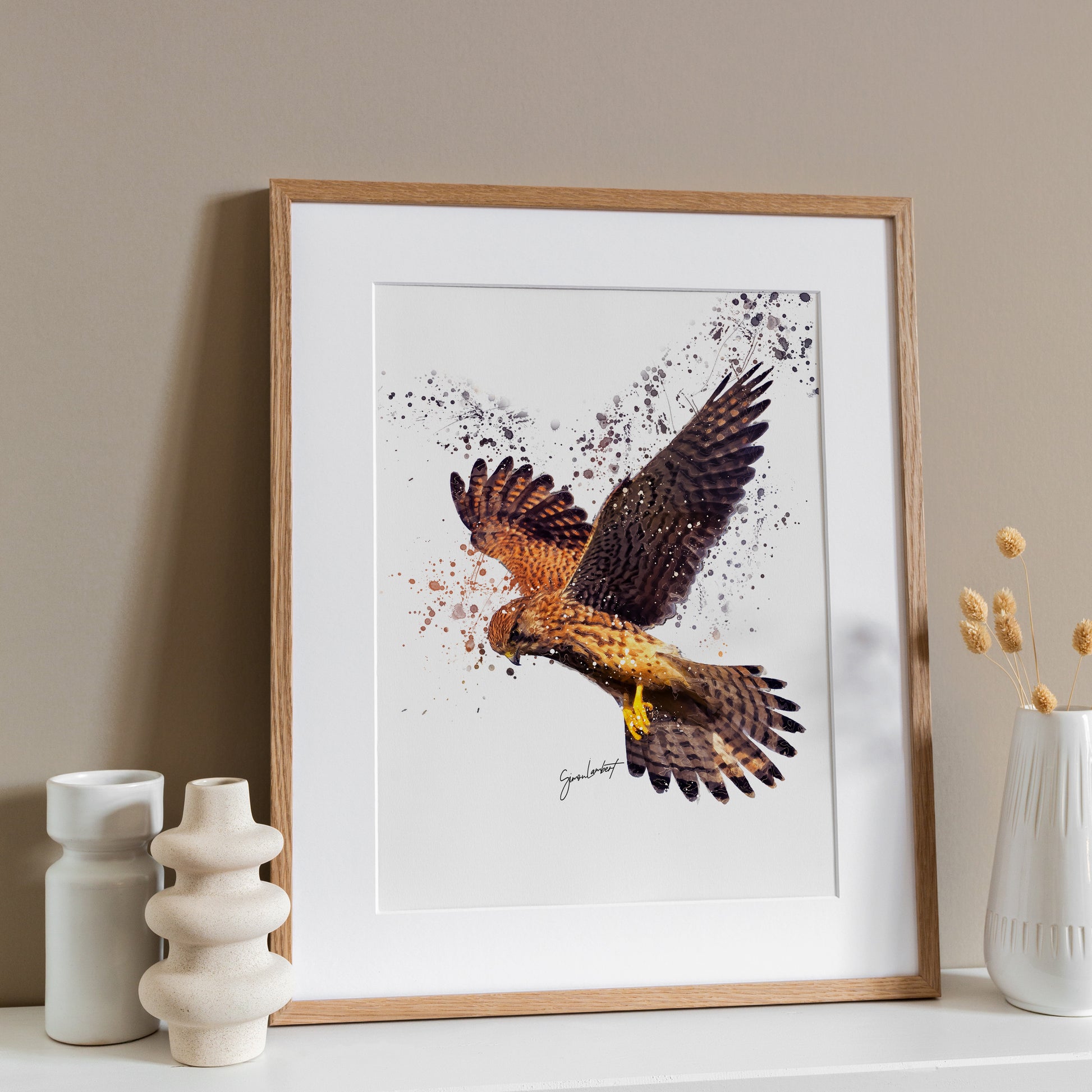 Kestrel Portrait Splatter Style Artwork Fine Art Print (Unframed)