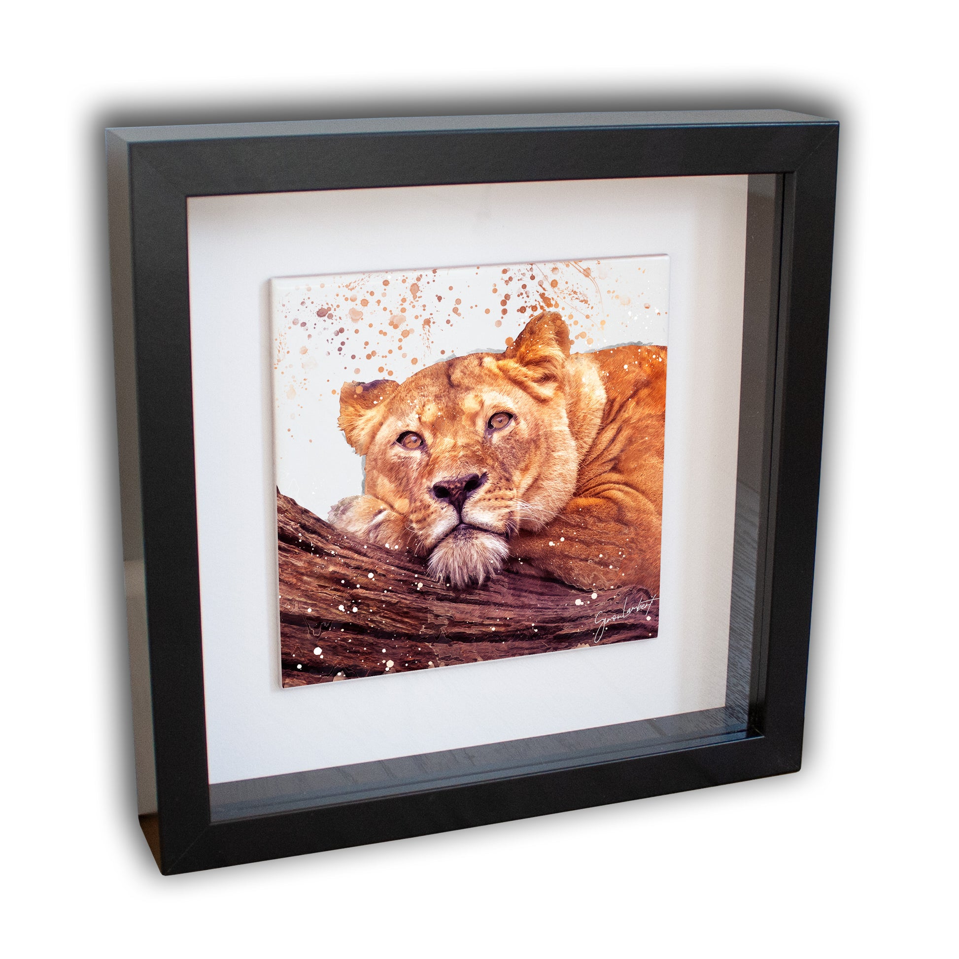 Lioness Portrait Brush Splatter Style Artwork - Framed CERAMIC TILE Art