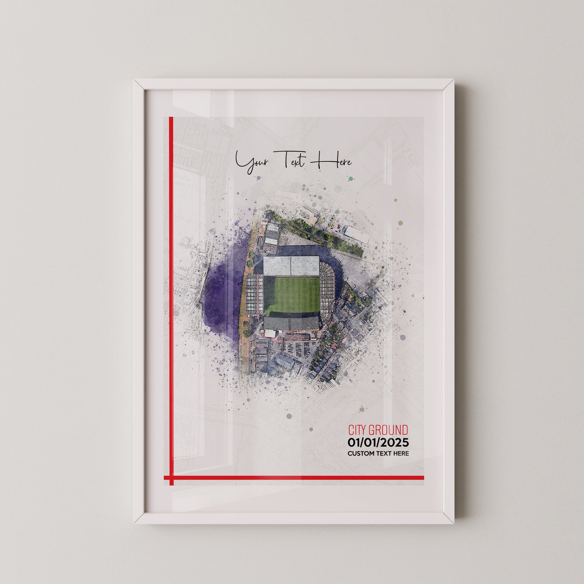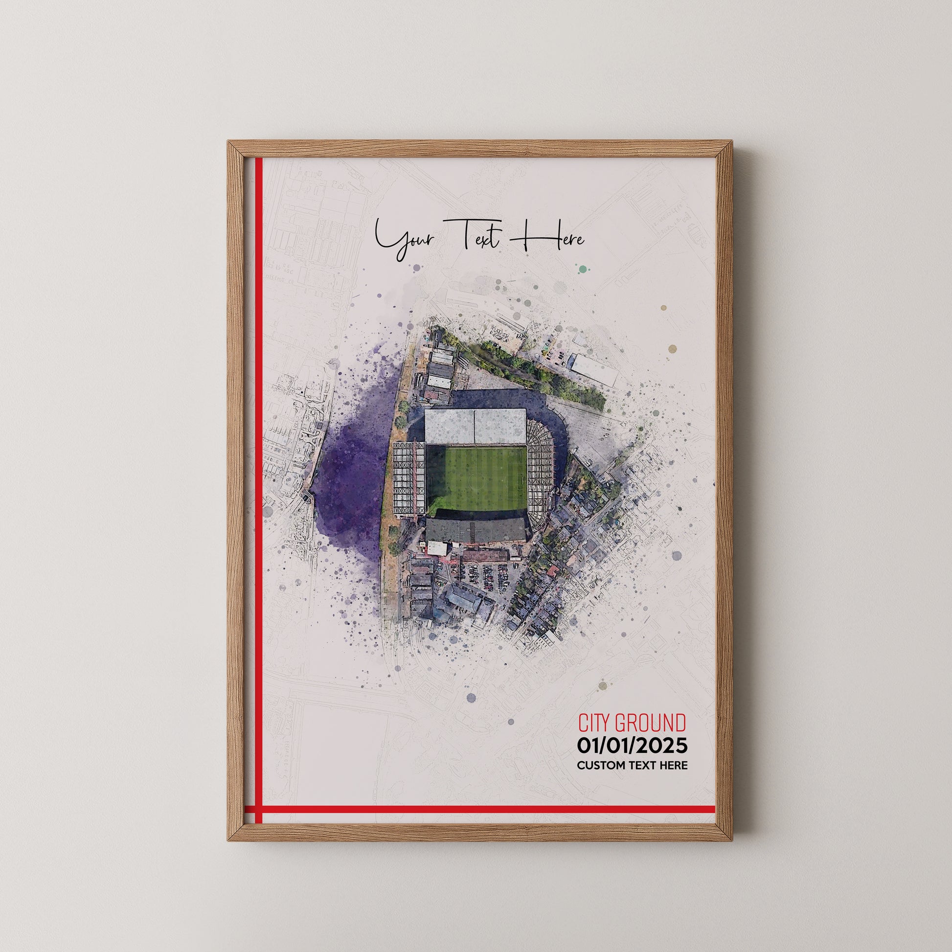 Nottingham Forest, 'The City Ground' Football Stadium Poster Artwork, Personalised Watercolour Art Print, Custom Aerial Layout - Framing options available ANY STADIUM Worldwide. (Copy)