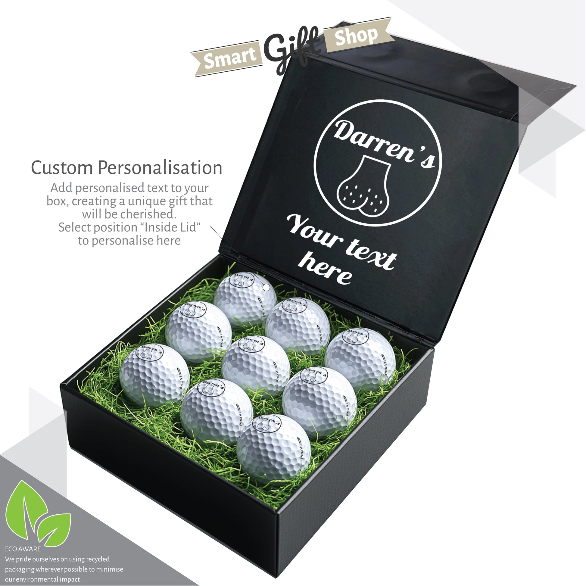 Personalised 9 Golf Ball Set in Customised Box - Joke Novelty "Custom Name's Balls!" with Branded Balls: Novelty Golfer's Gift, Father's Day, Birthday