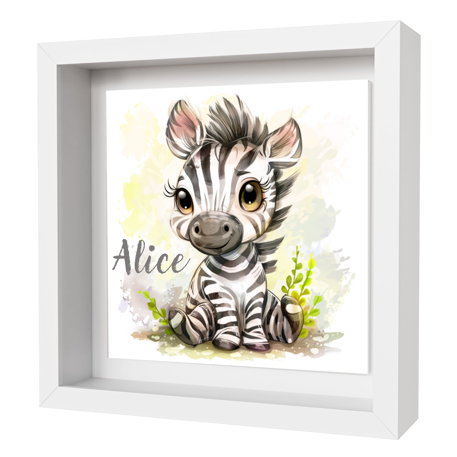 Personalised Baby Zebra Artwork - Framed/Mounted Ceramic Tile Print