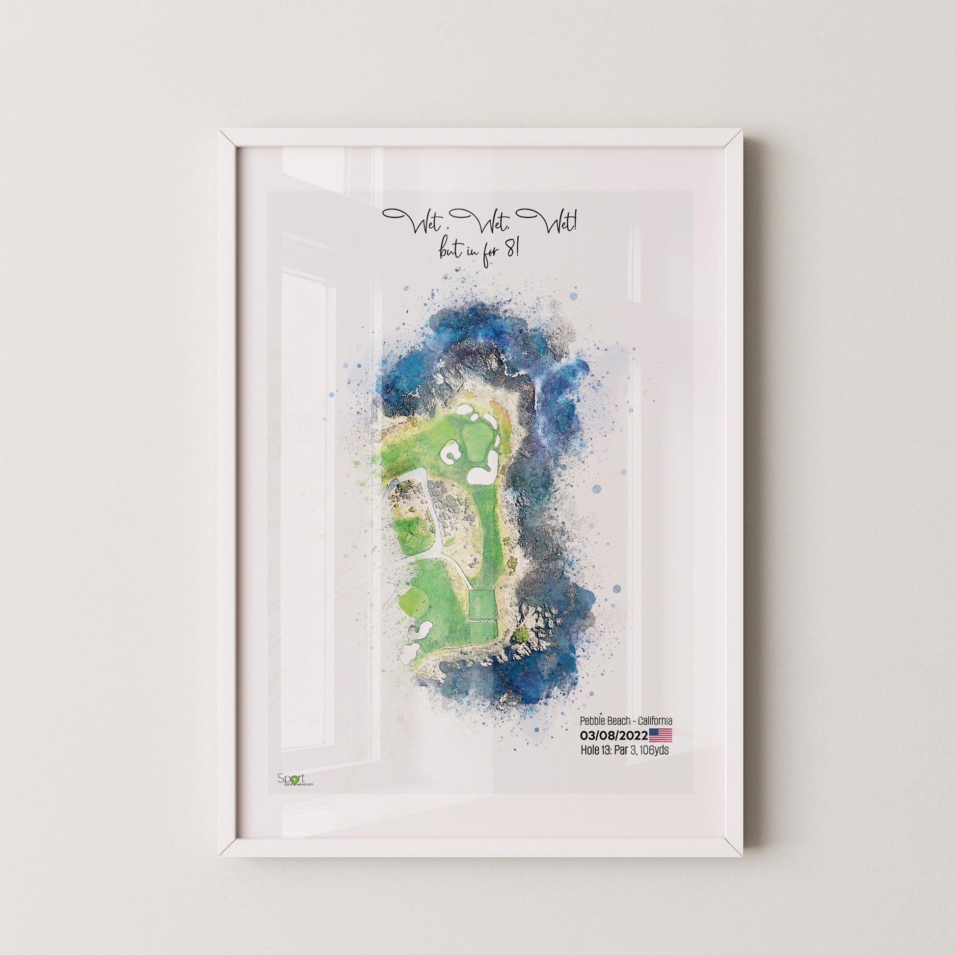 Personalised Golf Art Print, Custom Aerial Golf Course Map Layout - ANY HOLE Worldwide, Bespoke Text, Hole in One Gift Keepsake, Men Women, Father's Day, Birthday, Retirement