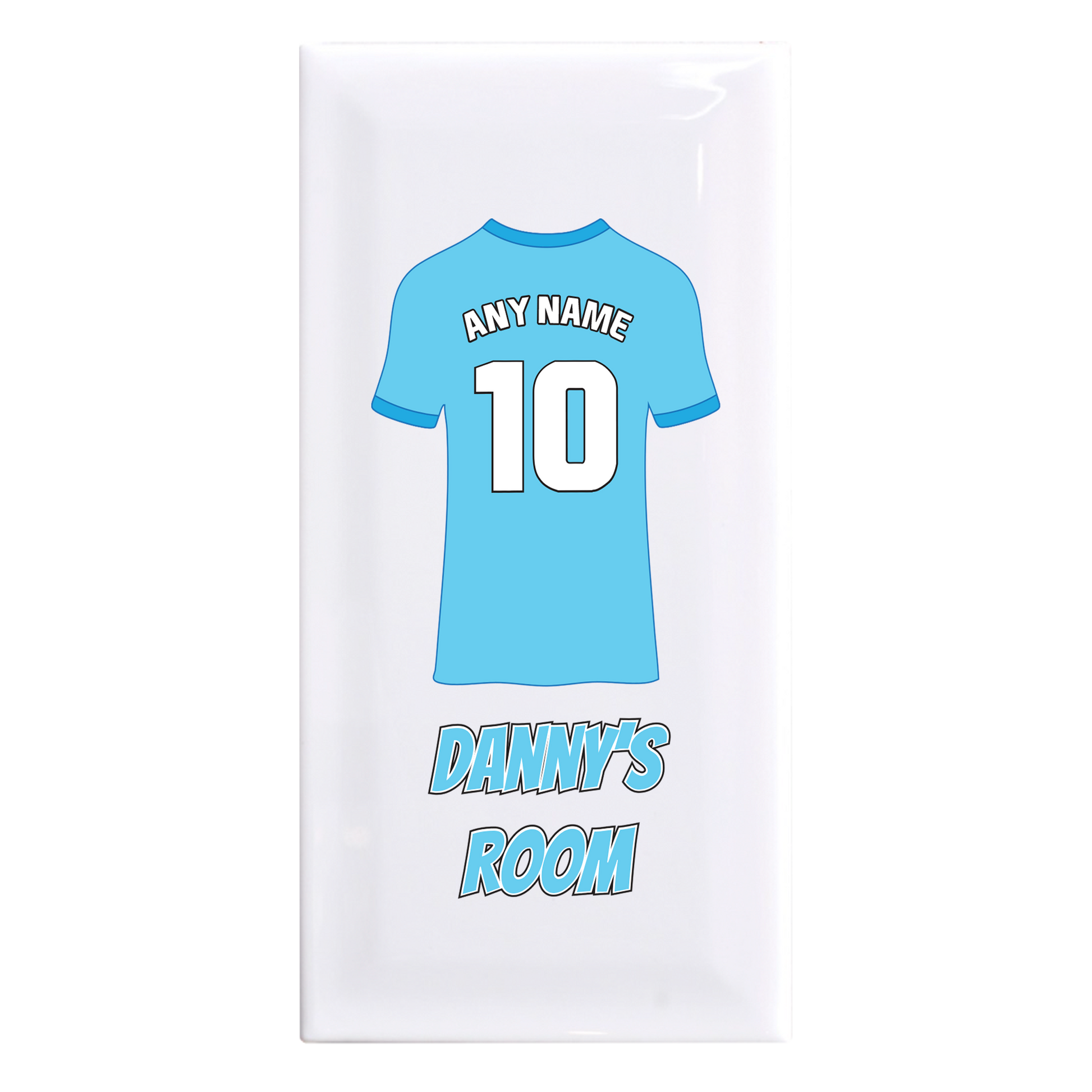 Personalised Premium Ceramic Children's Football Door Plaque. This unique, custom-made plaque allows you to add your child’s name or favourite player and number. Perfect for young football fans, this keepsake celebrates their passion for the game while making their room extra special.