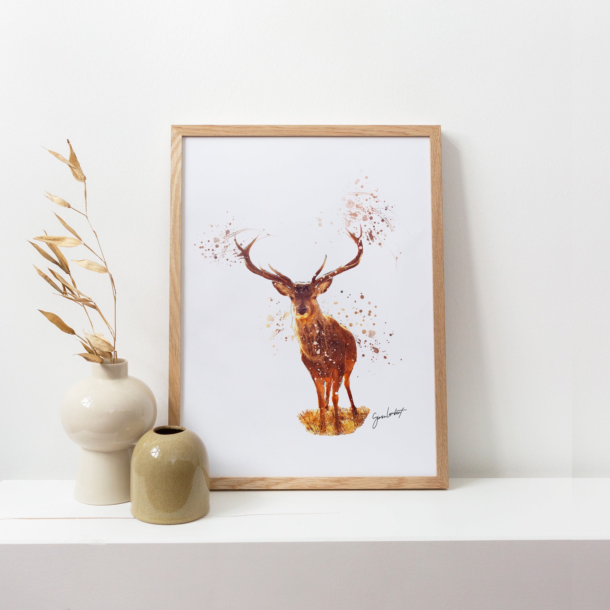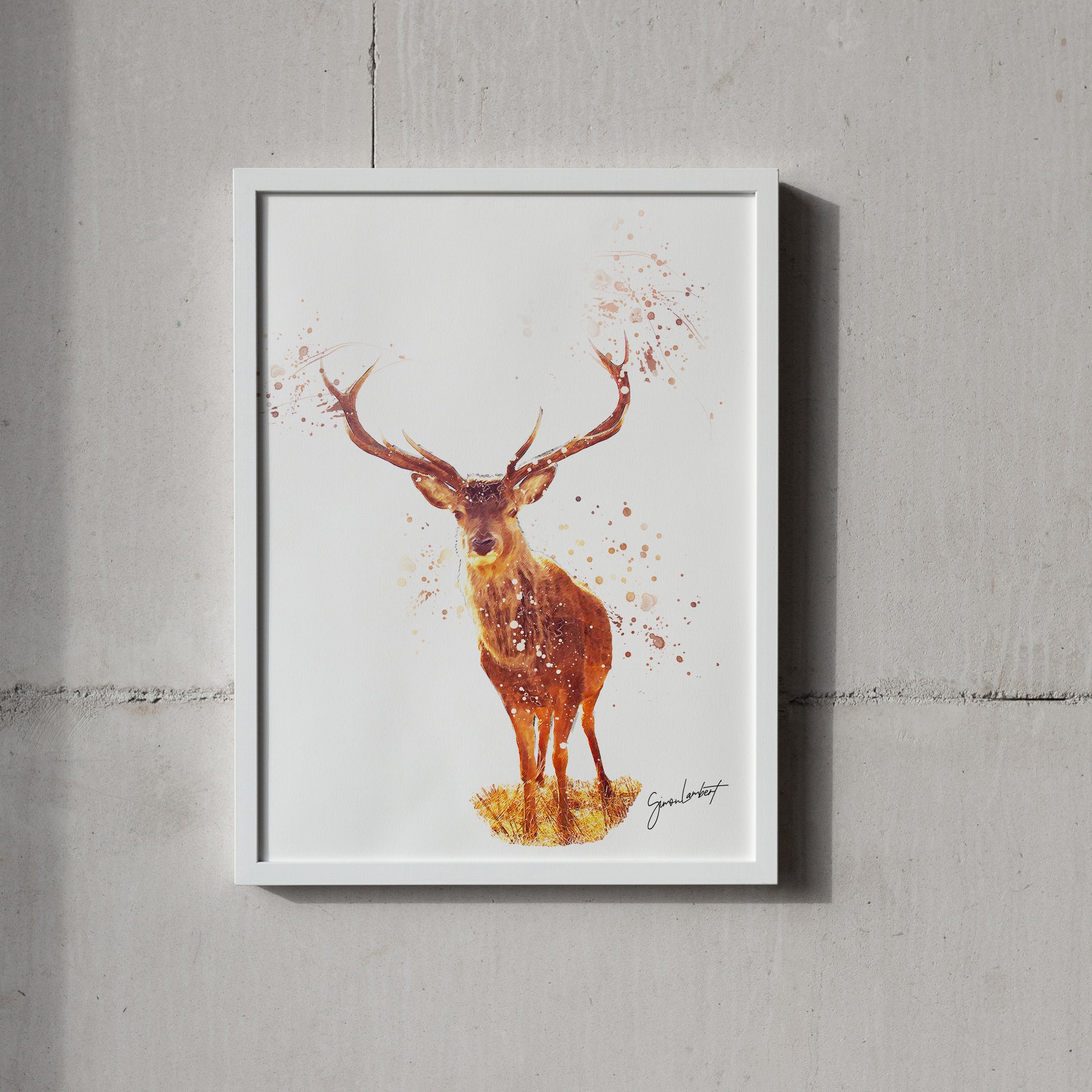 Stag Portrait Splatter Style Artwork Fine Art Print (Unframed)