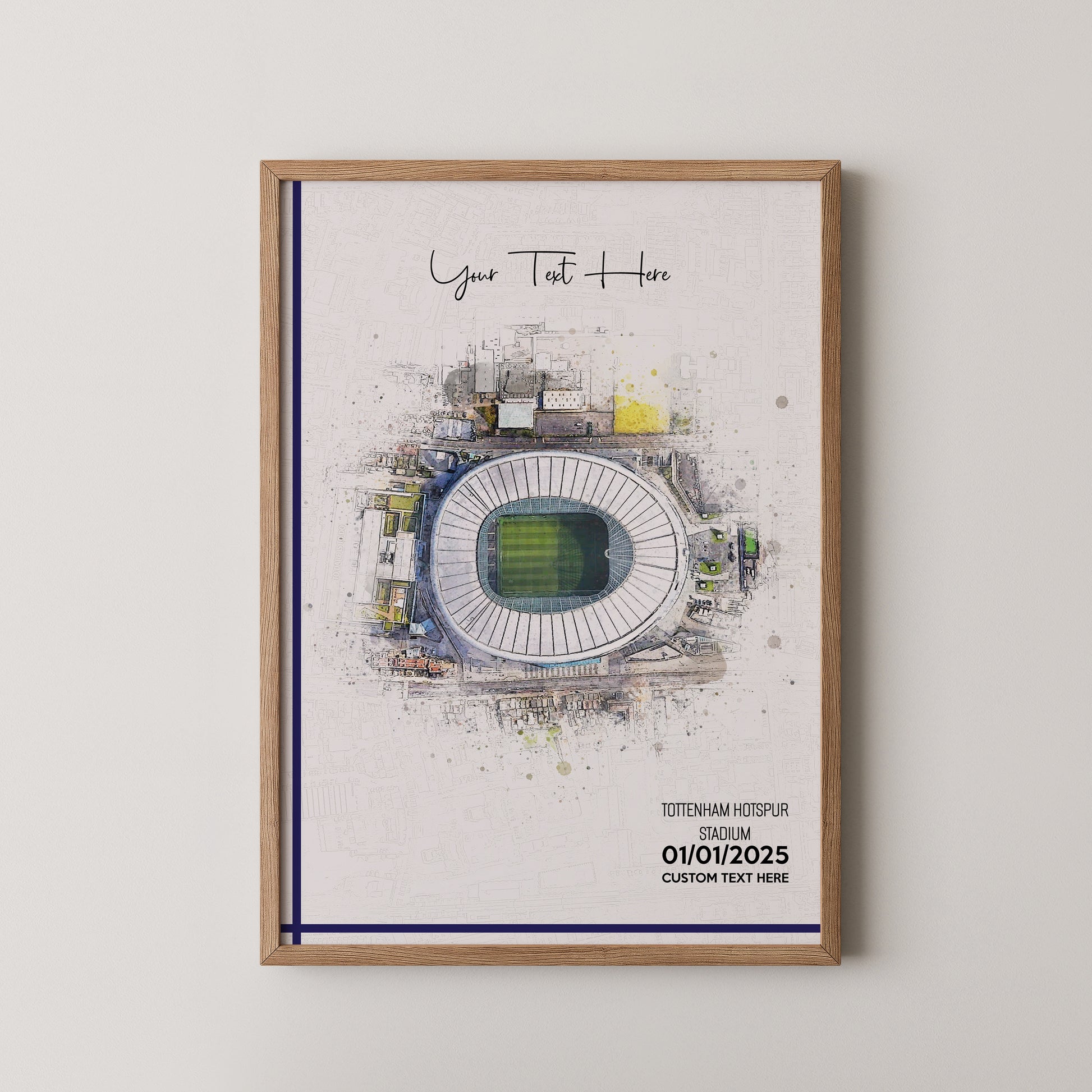 Tottenham Hotspur, 'London Stadium' Football Stadium Poster Artwork, Personalised Watercolour Art Print, Custom Aerial Layout - Framing options available ANY STADIUM Worldwide.