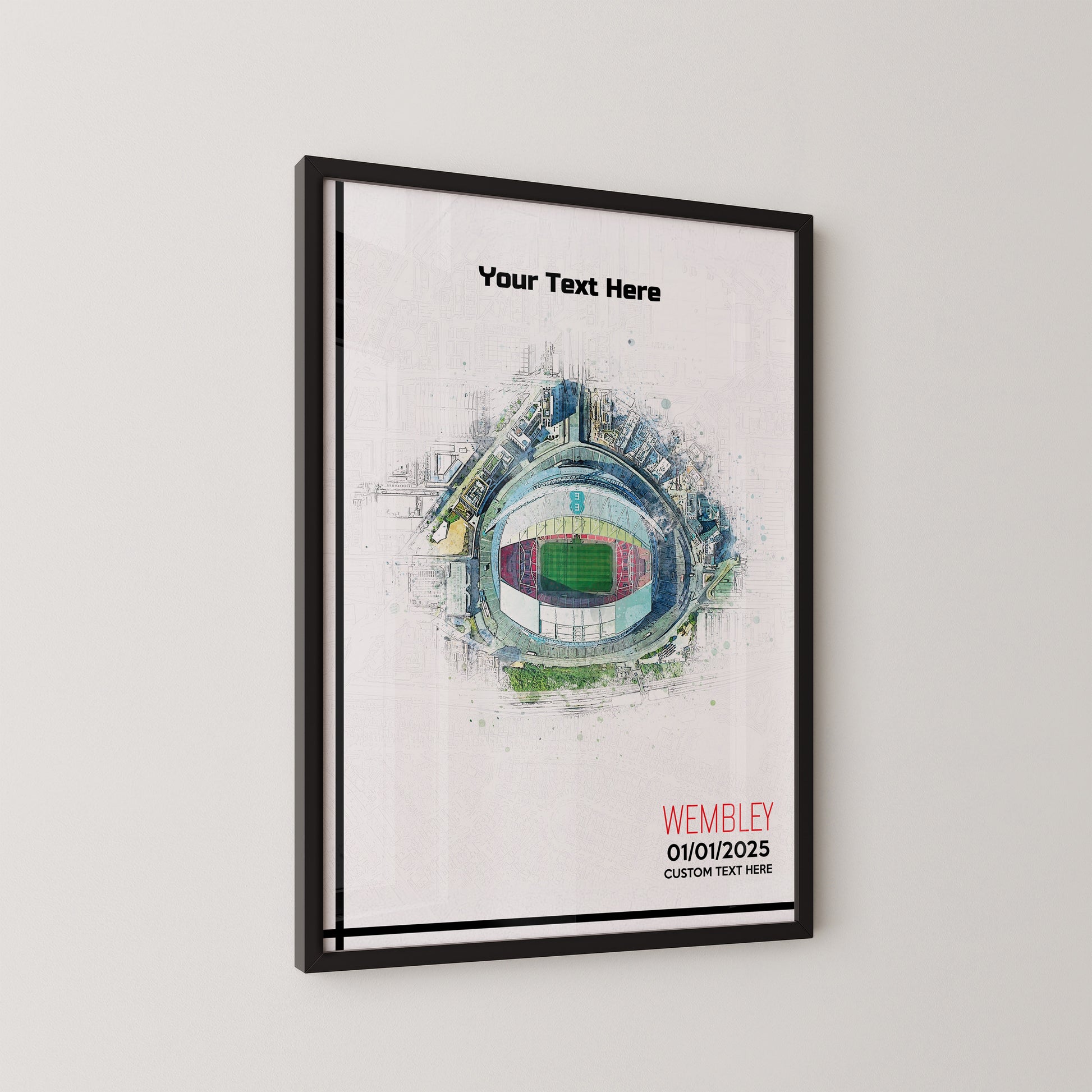 Wembley, 'National Stadium' Football Stadium Poster Artwork, Personalised Watercolour Art Print, Custom Aerial Layout - Framing options available ANY STADIUM Worldwide.