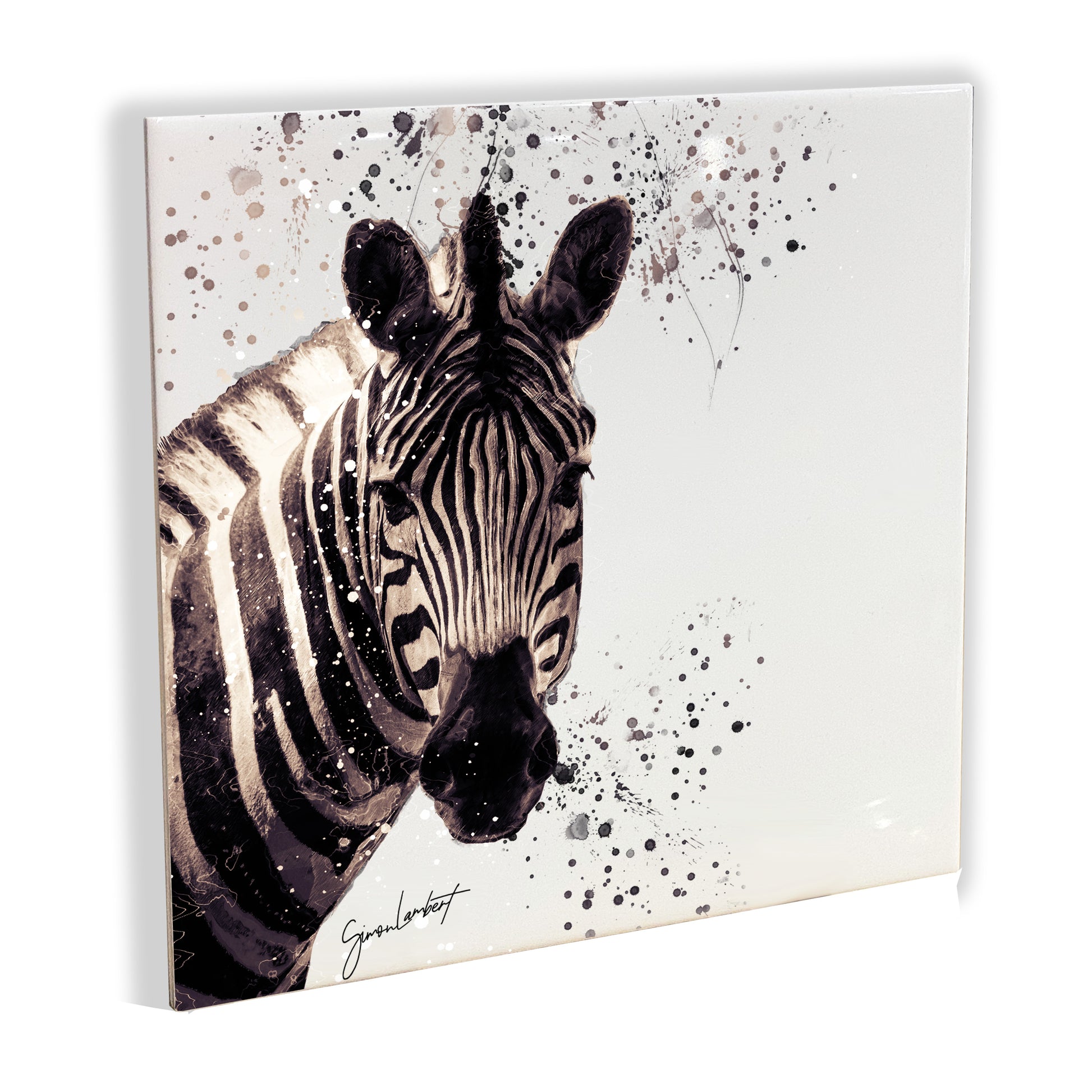 Zebra Portrait Brush Splatter Style Artwork - Framed CERAMIC TILE Art